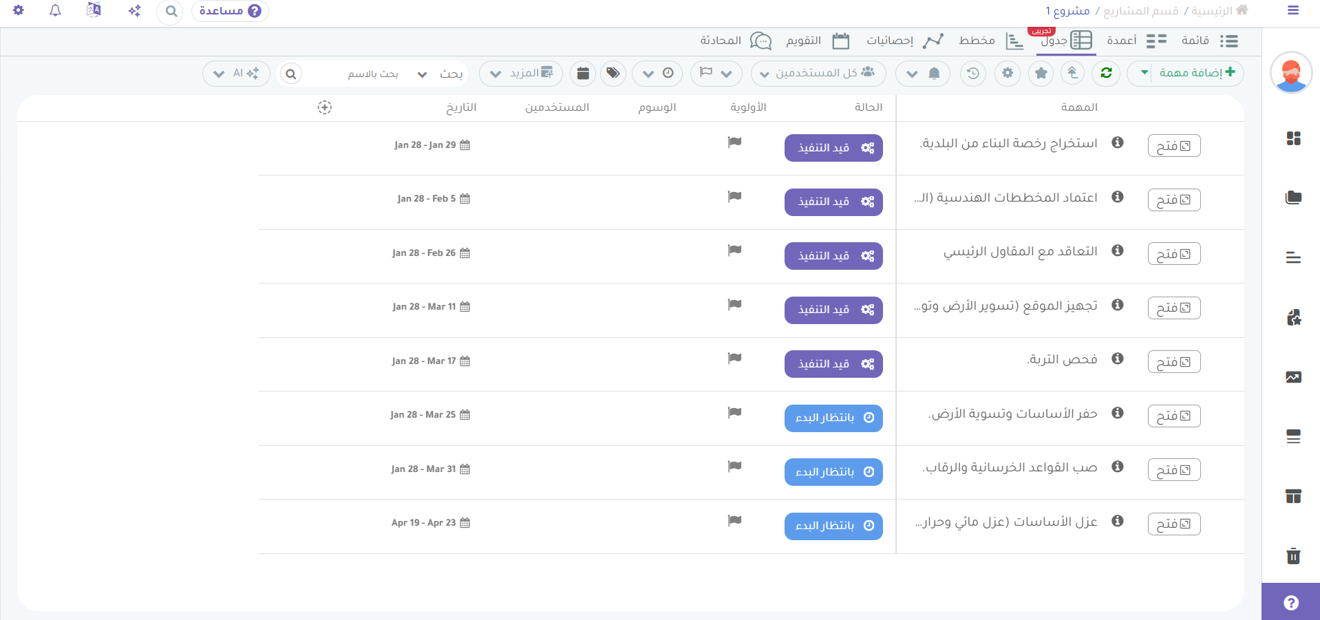 تسمح لك هذه الميزة في بروجكتو بمراقبة سير العمل بشكل تفاعلي، حيث تدعم: